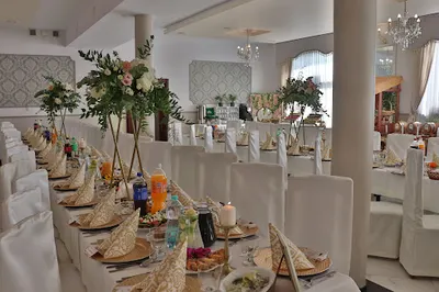 “Opinie są w większości bardzo pozytywne (18x5/5), chwalące salę bankietową za pyszne i obfite jedzenie, profesjonalną obsługę oraz przestronne i zadbane otoczenie. Idealna na wesela, chrzciny, komunie i rocznice. Jedna opinia wskazuje na problem z nieświeżym jedzeniem.”